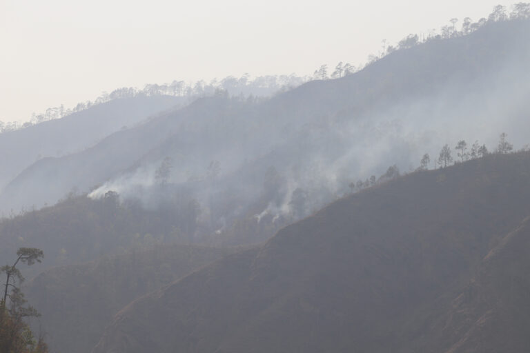 जाजरकोट, ११ वैशाख । सिम्ता गाउँपालिका सुर्खेतको लुकइमा आगलागी हुँदा सामुदायिक वन सखाप । यो आगो जाजरकोटको शिवालय– १ मा समेत प्रवेश गरेको छ । तस्वीरः हेमन्त केसी÷रासस