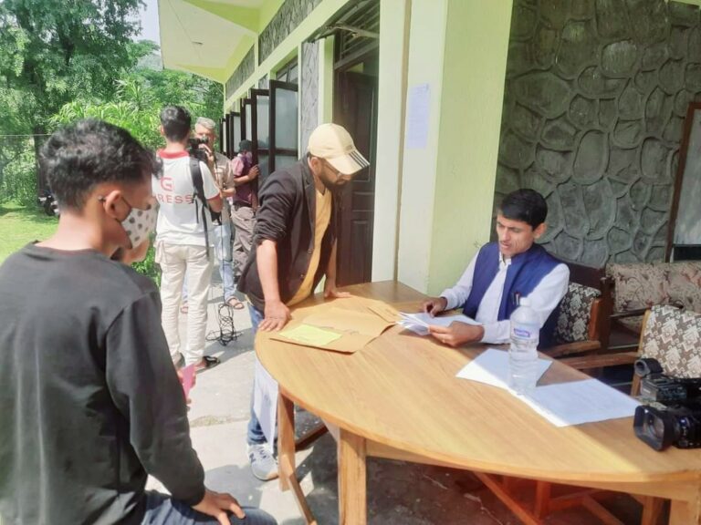 उनको प्रस्तावकमा अप्सरा अधिकारी र समर्थकमा सरोज जिसी छन् । उम्मेदवारी दर्तापछि उनले स्थानीय तहमा दलीयभन्दा पनि स्वतन्त्र उम्मेद्वारले बढी काम गर्न सक्छन् भन्ने मान्यता स्थापित गर्न उम्मेद्वारी दर्ता गराएको बताए । तस्विरः अभिमन्यू पाण्डे