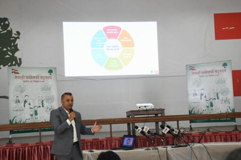 कांग्रेसले सार्वजनिक गरेको सकंल्पपत्रको मूल नारा ‘समुन्नत गाउँ, समन्नुत नगर, सवल स्थानीय सरकार’ नारा राखेको छ ।