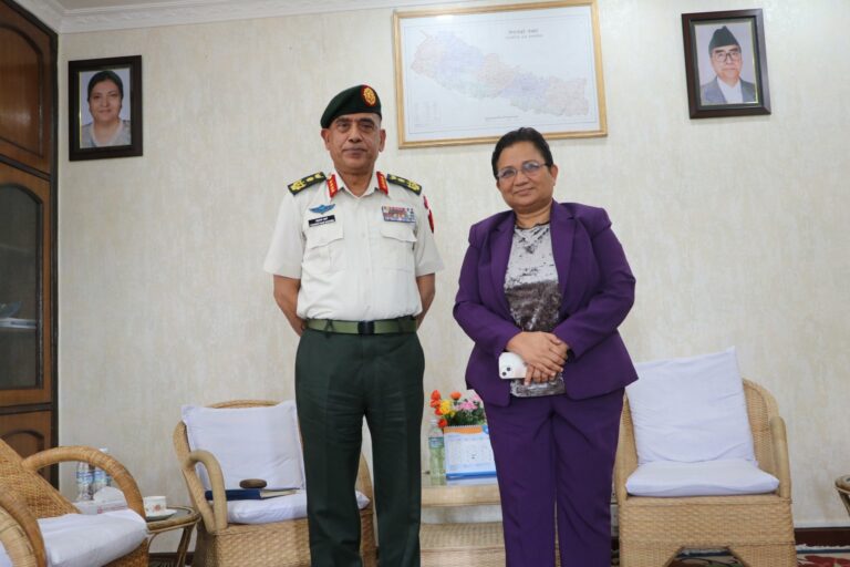 काठमाडौं, ११ वैशाख । ऊर्जा, जलस्रोत तथा सिँचाइमन्त्री पम्फा भुसालसँग प्रधानसेनापति महारथी प्रभुराम शर्माले आज भेटवार्ता गरेका छन् । त्यस अवसरमा उनीहरूबीच विद्युत्को विकास तथा खपतका विषयमा छलफल भएको थियो ।