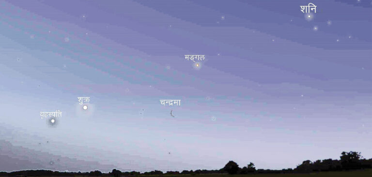 काठमाडौं, वैशाख १५ । आकाशमा हरेक दिन सूर्यको चमक र हरेक रात चन्द्रमाको उज्यालो त सबैले देखेकै हो तर अचेल हरेक बिहान झिसमिसेमा आकाशका अन्य ग्रहको विशिष्ट दृश्य पनि देख्न पाइन्छ । अघि–पछि आकाशमण्डलमा मानिसको नजरबाट धेरै पर रहेका ग्रह अहिले सहजै देख्न पाइने विज्ञहरूले बताउन्छन् । ग्रहहरू धर्तीमा झर्न उद्यत भएको यो अकल्पनीय दृश्य बारम्बार नआउने अवलोकनकर्ताको भनाई छ ।