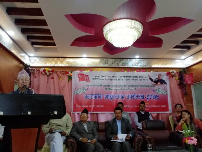 भक्तपुर, १९ वैशाख । नेपाल मजदुर किसान पार्टीका अध्यक्ष नारायणमान बिजुक्छेंले आफ्नो पार्टीको उम्मेदवारी नेपाली कांग्रेस र एमालेको दुई दलीय तानाशाहीविरुद्ध भएको बताएका छन् ।