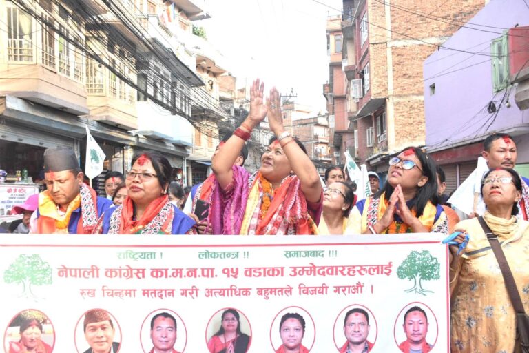काठमाडौं, २० वैशाख । काठमाडौं महानगरपालिकामा नेपाली काँग्रेसकी मेयरकी उम्मेदवार सृजना सिंह भोट माग्न सक्रिय भएकी छिन् । उनी टोल टोल पुगेर भोट मागिरहेकी छिन् ।