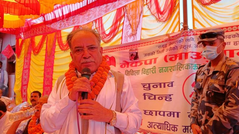 मधेस प्रदेशको धनुषास्थित मिथिला नगरपालिकामा आज पार्टी कमिटीले आयोजना गरेको चुनावी सभालाई सम्बोधन गर्दै प्रचण्डले अध्यादेश ल्याएर नागरिकता समस्या समाधान गर्न खोजिँदा सर्वोच्च अदालतमा रिट परेको र रिटको सुनुवाइ गर्दै अदालतले संसद्बाटै छलफल गरेर निर्णय गर्न आदेश दिएको बताए ।