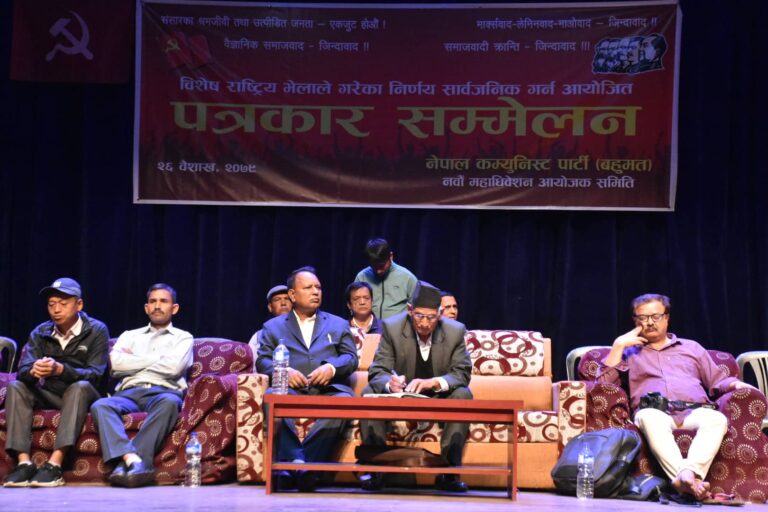 काठमाडौं, २६ बैशाख । नेत्रविक्रम चन्द विप्वलको नेतृत्वको पार्टीबाट विद्रोह गरेर जन्मेको नेपाल कम्युनिष्ट पार्टी (बहुमत)ले आज पत्रकार सम्मेलनको आयोजना गरेको छ ।