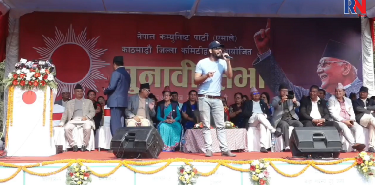 एमालेको चुनावी सभा राजधानीको भृकुटीमण्डपमा सुरु भएको हो ।