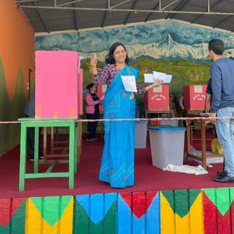 काठमाडौं मध्य बानेश्वरस्थित भ्याली भ्यु स्कुल केन्द्रबाट मतदान गरेकी हुन् ।