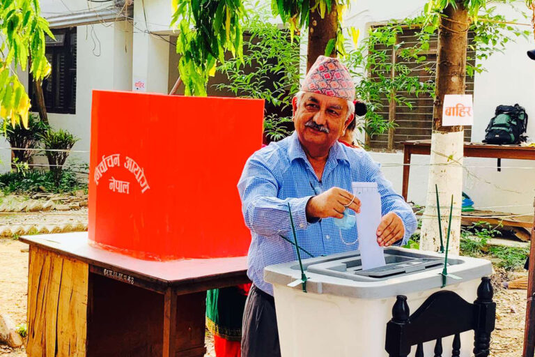 मतदान गर्दै एमाले उपाध्यक्ष पाण्डे