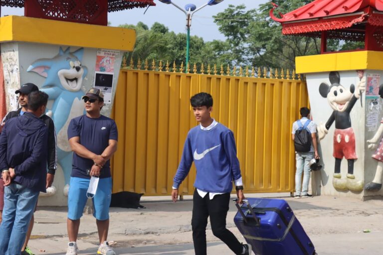 काठमाडौंको भृकुटीमण्डपमा एक जना विदेश जान युवा सडकमा सुटकेश घिसार्दै हिँडेको पाईएको छ ।
