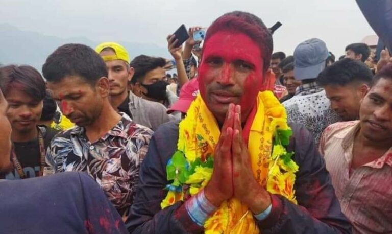 काठमाडौँ,२ जेठ । गालामा रातो अबीर खादै खादाले भरिएको घाँटी । हातमा पार्टीका झण्डा । सयौँको भीडभाड । वर्षा हुँदा पनि खुसीमा रमाउँदै नाचगान गरेकोे यो दृश्य ताप्लेजुङको सदरमुकाम फुङ्लिङ बजारको हो।