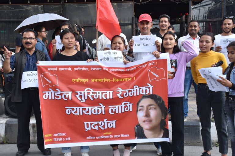 छात्र छात्राहरुले ‘हामी चुप बस्दैनौ’, ‘जस्टिस फर सुस्मिता’, ‘सुस्मितालाई न्याय दे’ लेखेका प्ले कार्ड बोकेर प्रर्दशनमा उत्रिएका थिए । युवती आफैले आफु ८ वर्ष अघि फोटोग्राफर लगायतले आफुलाई बलात्कार गरेको भिडियोमार्फत जानकारी गराएकी थिइन् ।