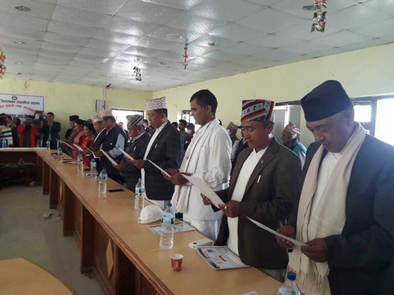 काठमाडौं, जेठ ७। निर्वाचित भएर शुक्रबारदेखि काम थालेका स्थानीय तहका जनप्रतिनिधिले विभिन्न वाचा र प्रतिबद्धता गर्दै शपथ लिएका छन् । कसैले आफ्नो कार्यकालमा कुनै पनि भ्रष्टचार नगर्ने भन्दै देउताको घण्टा छोएर पदभार ग्रहण गरेका छन् भने कसैले आफ्नो गाउँठाउँको विकासमा २४सै घण्टा खट्ने घोषणा गरेका छन् ।