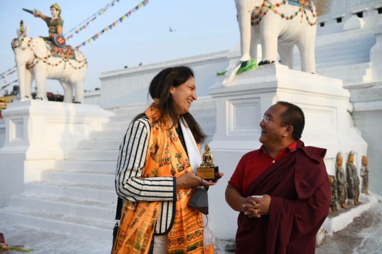 बौद्ध स्तुपामा पुगेर जियाले तिब्बती नेताहरुसँग भेटेर तस्बिर खिचाएकी छिन् । उनले तिब्बती शरणार्थीको मानवअधिकार देखि पछिल्लो अवस्थाबारे समेत जानकारी लिएकी छिन् ।