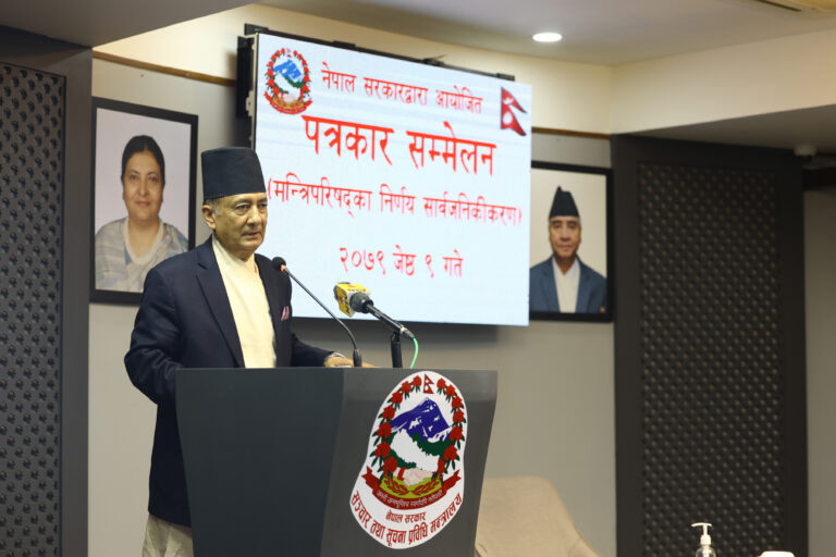 काठमाडौँ,९ जेठ । सञ्चार तथा सूचना प्रविधिमन्त्री ज्ञानेन्द्रबहादुर कार्की सोमबार मन्त्रालयमा मन्त्रिपरिषद्ले गरेका निर्णय सार्वजनिक गर्दै । तस्बिरः रोशन सापकोटा÷रासस