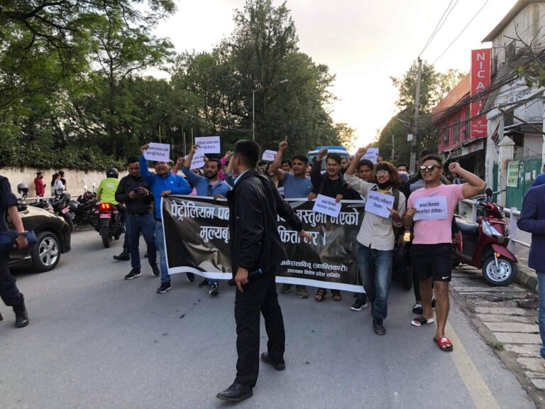उनीहरुले मूल्यवृद्धि खारेजीको माग राखेर आज साँझ प्रदर्शनीमार्गस्थित् आर.आर. क्याम्पसअघि प्रदर्शन गरेका हुन् ।