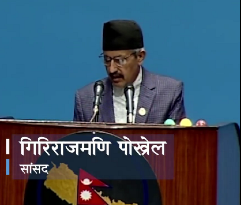 काठमाडौं, १४ जेठ । नेकपा माओवादी केन्द्रका सांसद गिरिराजमणि पोखरेलले संसदमा एकसाथ प्रधानमन्त्री शेरबहादुर देउवा र प्रमुख प्रतिपक्षी दल नेकपा एमालेका अध्यक्ष केपी शर्मा ओलीको आलोचना गरे । उनले देउवाले चीनलाई सशंकित गराएको आरोप लगाए । ओलीमाथि लिपुलेक र कालापानीसम्बन्धी पुस्तक प्रधानमन्त्री हुँदा रोक लगाएको खुलासा गरे ।