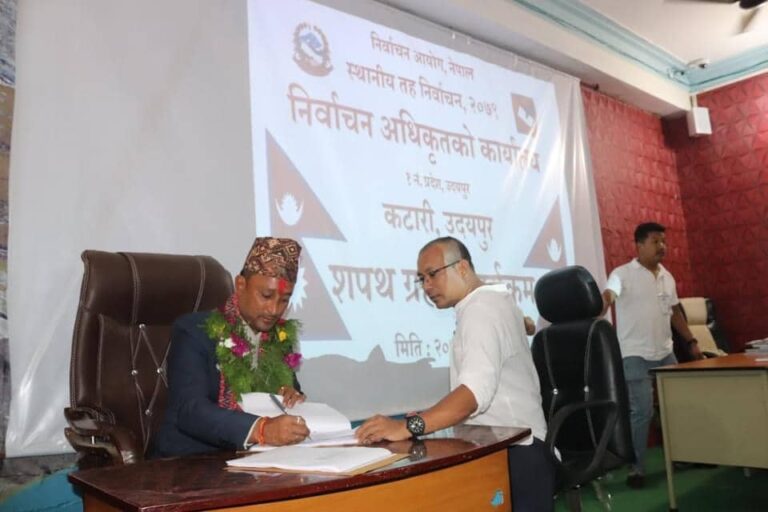 उदयपुर,जेठ १७ । कटारी नगरपालिकाका नवनिर्वाचित मेयर राजेशचन्द्र श्रेष्ठले आफ्नो पारिश्रमिक नगरपालिकाका बिपन्न बर्गको स्वास्थ र शिक्षामा खर्च गर्ने घोषणा गर्नुभएको छ ।