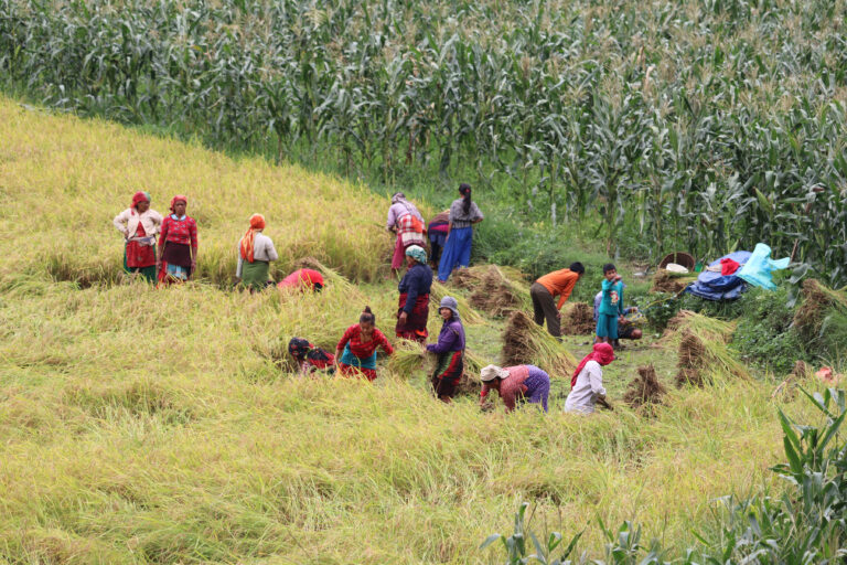 त्रिशुली,१७ जेठ । नुवाकोटको पञ्चकन्या गाउँपालिका–२, सहरेटारका किसान चैतमा लगाइएको हिउँदे धान भित्र्याउँदै । यस वर्ष धान उत्पादन राम्रो भए पनि भित्र्याइने समयमा निरन्तर भएको वर्षाले प्रभावित बनाएको छ । तस्बिर ः रामहरि न्यौपाने÷रासस