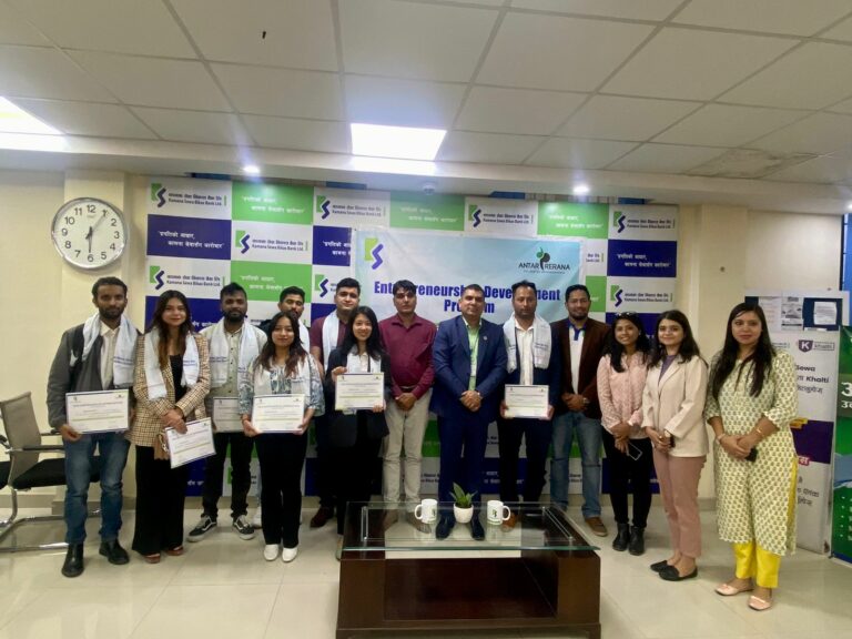 काठमाडौं, १८ जेठ । कामना सेवा विकास बैंकले Entrepreneurship Development Program सञ्चालन गरेको छ । बैंकले अन्तरप्रेरणासंगकोे सहकार्यमा उद्यमशिलता विकास र प्रवर्धन को उद्देश्यका साथ यो कार्यक्रम गरेको हो ।