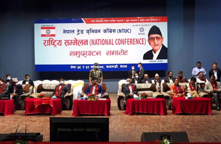 काठमाडौं, २९ जेठ । प्रधानमन्त्री एवं कांग्रेस सभापति शेरबहादुर देउवाले अहिलेको सरकार कांग्रेसको एकलौटी सरकार नभएकाले धेरै दाबी गर्न नमिल्ने बताएका छन्।काठमाडौंमा आइतबारदेखि सुरु भएको नेपाल ट्रेड युनियन कांग्रेसको राष्ट्रिय सम्मेलनमा देउवाले विभिन्न विषयमा कांग्रेस नेता कार्यकर्ताले दाबी गर्न नमिल्ने बताएका हुन्।‘यो कांग्रेसको एकलौटी सरकार होइन,’ प्रधानमन्त्री देउवाले भने, ‘यो नबुझिकन तपाईंहरूले क्लेम गर्ने कुरा छैन।’ उनले नीति तथा कार्यक्रममा आएका कुराहरू कतिपय बजेटमार्फत सम्बोधन गरिएको र छुटेका भए कुनै न कुनै माध्यमबाट सम्बोधन गरिने विश्वास दिलाए । सम्मेलन सोमबारसम्म चल्ने छ ।