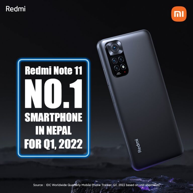 काठमाडौं, ३० जेठ । इन्टरनेशनल डाटा कर्पोरेशनको वर्ल्डवाइड क्वाटर्लि मोबाइल फोन ट्र्याकर, Q1 २०२२ को रेड्मी नोट ११ नेपालको नम्बर १ स्मार्टफोन रहेको दाबी गरिएको छ ।