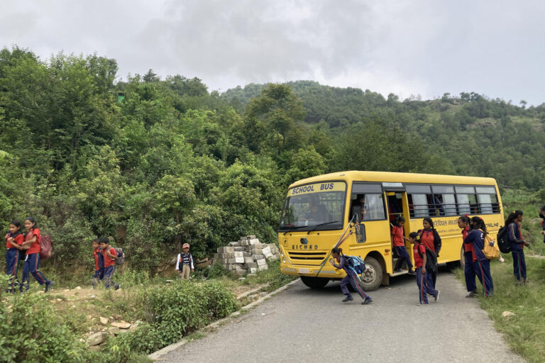 काठमाडौँ,३० जेठ । बागलुङ नगरपालिका–६ स्थित लहरेपिपल माध्यामिक विद्यालयले सञ्चालनमा ल्याएको स्कुल बस । स्कुल बस सञ्चालनमा ल्याएसँगै टाढाटाढा घर भएका विद्यार्थीलाई अहिले विद्यालयमा पुग्न र घरफर्कन सजिलो भएका छन् । तस्बिर : खेमराज गौतम÷रासस