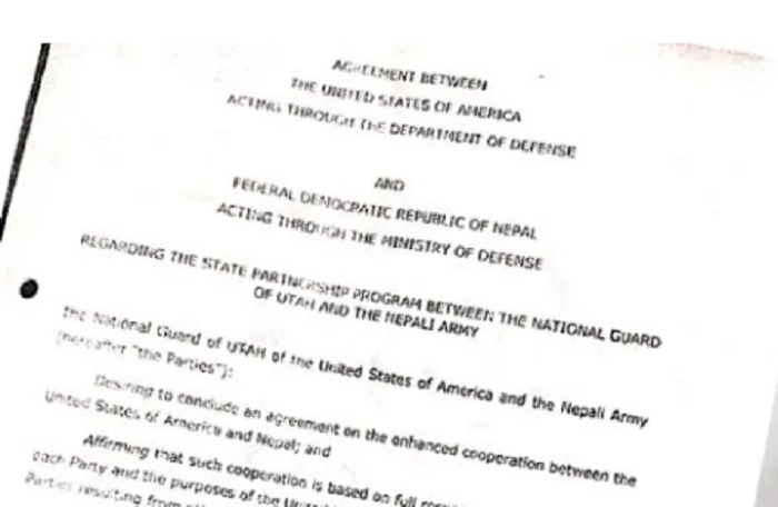 काठमाडौं, २ असार । अमेरिकी सैन्य साझेदारीसम्बन्धी स्टेट पार्टनरसिप प्रोग्राम एसपीपीको मस्यौदा भनिएको एउटा पत्र निकै चर्चामा आयो । यसबारे सदन देखि सडकसम्म चर्चा र बहस चल्यो । तर, उक्त मस्यौदा नक्कली भएको खुलस्त भएको छ ।