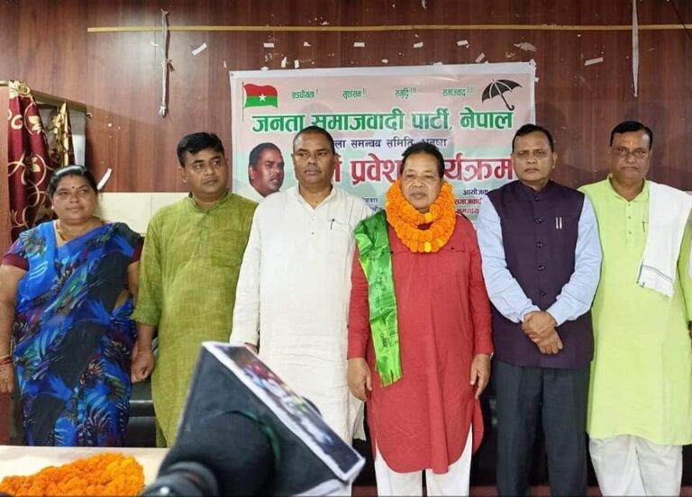 काठमाडौं, ६ असार । जनकपुरका चर्चित व्यवसायी तथा समाजसेवी बलराम महतो जनता समाजवादी पार्टी, नेपालमा प्रवेश गरेका छन् । गत बैशाख ३१ गते सम्पन्न भएको स्थानीय तहको निर्वाचनमा जनकपुर उपमहानगरपालिकाको मेयरमा महतोले स्वतन्त्र उम्मेद्धवारी दिएका थिए ।