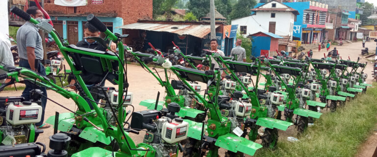 काठमाडौँ,८ असार । रामपुर नगरपालिका–३ स्थित दर्छा हरियाली साना किसान कृषि सहकारी संस्थाले कृषकलाई वितरण गर्न राखेको मिनिटिलर । तस्बिर : सुशीला रेग्मी÷रासस