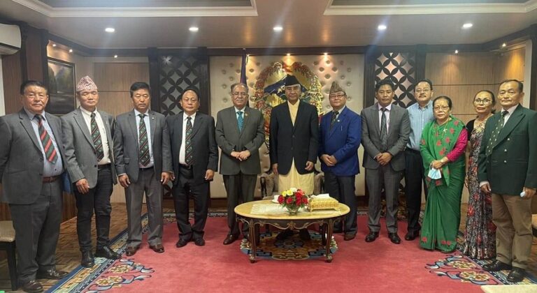 काठमाडौं, ९ असार । गोर्खा भुतपुर्व सैनिक संगठन (गेसो)का अध्यक्ष कृष्ण कुमार राई सहितको प्रतिनिधिमण्डलले आज प्रधानमन्त्री शेरबहादुर देउवासँग भेटवार्ता गरेका छन् ।