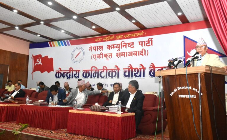 काठमाडौं, ११ असार । नेकपा (एकीकृत समाजवादी) को केन्द्रीय कमिटी बैठक जारी छ । काठमाडौंको बबरमहलस्थित कार्की ब्यांकेटमा जारी बैठकमा अहिले अध्यक्ष माधवकुमार नेपालले सम्बोधन गरिरहेका छन् । उनले कम्युनिष्ट पार्टीभित्र व्यक्तिवाद हाबी हुन नहुने टिप्पणी गरेका छन् ।