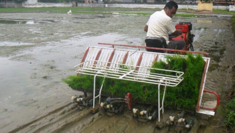 “प्रदेशमै पहिलोपटक धान रोप्ने अत्याधुनिक मेसिन भित्र्याएका छौँ”, उनले भने, “यस मेसिनको मद्दतले एक घण्टामा एक बिघा खेतमा बर्खे र चैते धान सहजरूपमा रोप्न सकिन्छ । ट्रेमा बेर्ना तयार गरी मेसिनमा राखेर रोप्ने गरिएको छ ।”