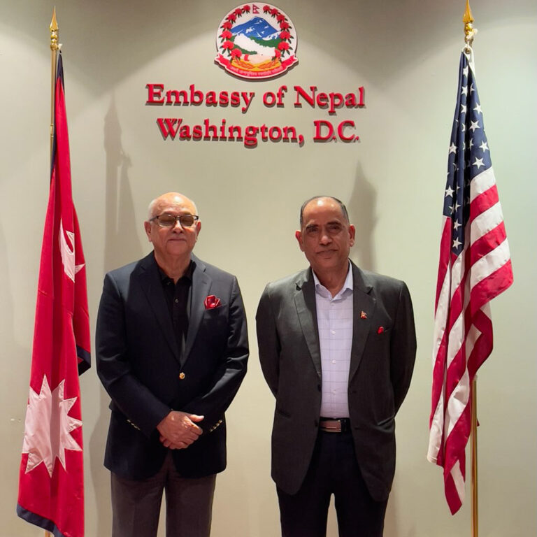 काठमाडौँ,१४ असार । अमेरिकाको औपचारिक भ्रमणमा रहेका प्रधानसेनापति प्रभुराम शर्मा र नेपालका लागि नेपाली राजदूत प्राध्यापक श्रीधर खत्री वासिङटनस्थित नेपाली राजदूतावासमा । तस्बिर सौजन्यः नेपाली सेना ÷रासस