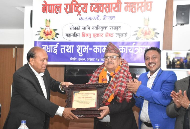 चीनका लागि नेपाली राजदूत श्रेष्ठलाई राष्ट्रिय व्यवसायी महासंघको बधाई, व्यवसायीले राखे यस्तो सर्त