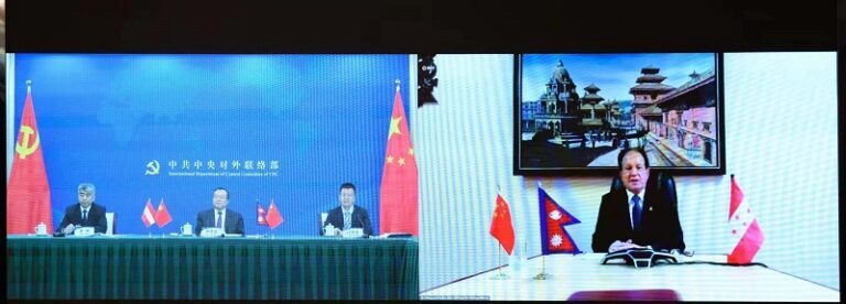 यसअघि गत बिहीबार र शुक्रबार सीपीसी विदेश विभागका प्रमुख लिउ जियानचाओले नेपालका दुई मुख्य कम्युनिस्ट पार्टीहरु नेकपा एमाले र नेकपा माओवादी केन्द्रका अध्यक्षद्वय केपी शर्मा ओली र पुष्पकमल दाहालसँग छुट्टाछुट्टै भिडियो संवाद गरेका थिए ।