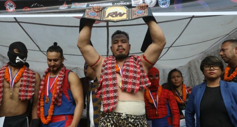 काठमाडौं, १९ असार । नुवाकोटे टाइगर चौथो राष्ट्रिय रिङ रेस्लिङ प्रतियोगितामा शनिबार च्याम्पियन बनेका छन् । प्रतियोगिताको मुख्य स्पर्धा मानिने हेभिवेट भिडन्तमा नुवोकोटेले डेविडलाई पराजित गर्दै राष्ट्रिय प्रतियोगितामा पहिलोपटक च्याम्पियन बनेका हुन् । अघिल्ला तीन संस्करणमा डेविड, साइन र चट्टान विजेता बनेका थिए । उपाधिसंगै नुवाकोटेले १ लाख २५ हजार नगद पुरस्कार पाए ।