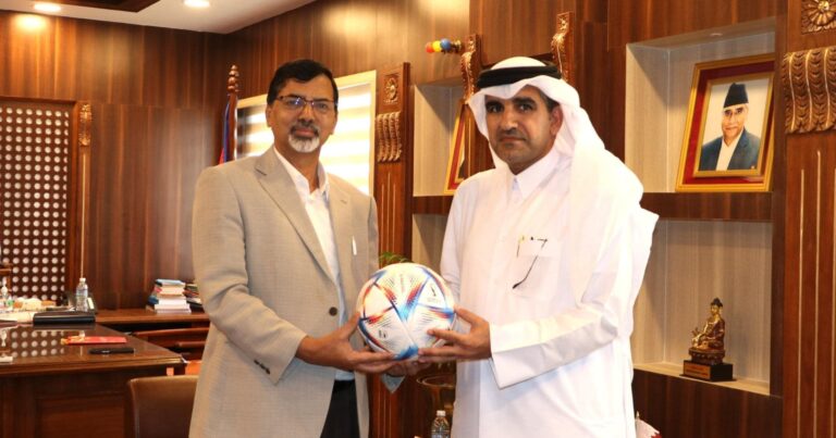 काठमाडौं, १९ असार : गठबन्धन सरकारका अर्थमन्त्री जनार्दन शर्मालाई कतार फिफा विश्वकप हेर्न नेपालका लागि कतारी राजदूत युसुफ बिन मोहम्मद अहमद अल हेलले आमन्त्रण गरेका छन् । दुईबीचको शिष्टाचार भेट आइतबार सिंहदरबारस्थित अर्थ मन्त्रालयमा भएको थियो ।