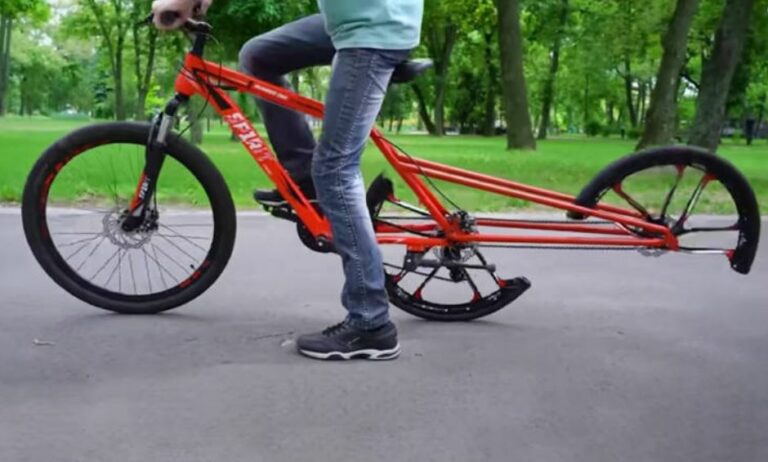 यो विचित्रको साइकलमा अगाडिको पूर्ण तर पछाडिको दुई वटा आधा पांग्रा छन् र तिनीहरूले अगाडिकोले जस्तै काम गर्छन् ।
