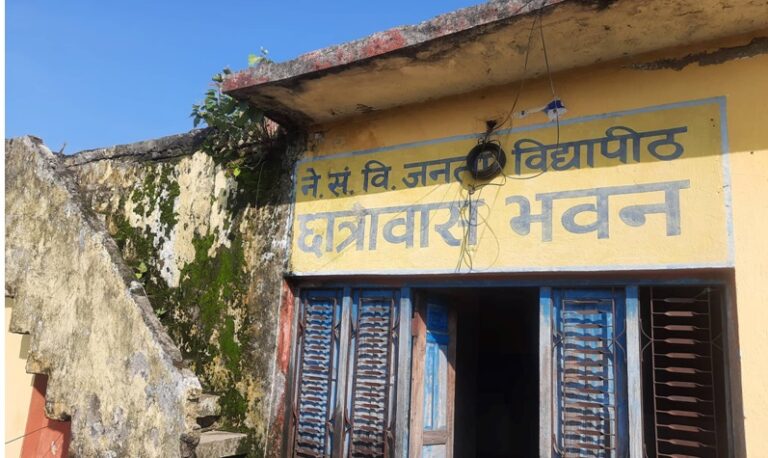 दाङ, असार २८ । मानिसको बसोवासजस्तो देखिँदैन । वरिपरि घाँसपात उम्रिएको छ । भित्तामा पानी चुहिएको जस्तो देखिन्छ । सरसफाइ छैन । भवन पनि भत्किन थालेको जस्तै देखिन्छ । यस्तो छ – नेपाल संस्कृत विश्वविद्यालय जनता विद्यापीठको तुलसीपुर–१८ विजौरीस्थित छात्रावास भवन ।