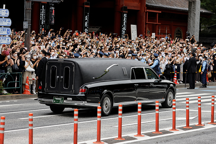 शुक्रबार चुनावी प्रचारप्रसार कार्यक्रममा सम्बोधनका क्रममा गोली हानि हत्या गरिएका आबेको राजधानी टोकियोको जोजोजी बौद्ध मन्दिरमा अन्त्यष्टि गरिदैछ ।