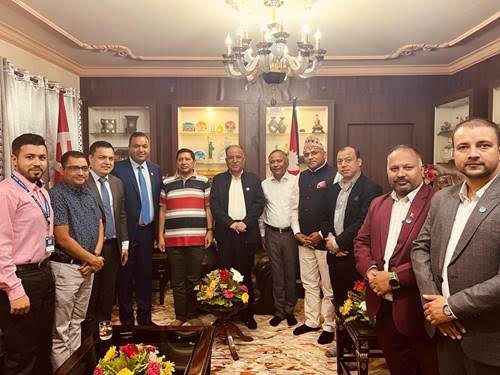 काठमाडौं, २८ असार । गैरआवासीय नेपाली संघ (एनआरएनए) का संस्थापक अध्यक्ष डा. उपेन्द्र महताको नेतृत्वमा संघको प्रतिनिधिमण्डलले पूर्व प्रधानमन्त्री एवं नेकपा (माओवादी केन्द्र) का अध्यक्ष पुष्पकमल दाहाल ‘प्रचण्ड’सँग भेटघाट गरेको छ । भेटघाट प्रचण्ड निवास खुमलटारमा भएको एनआरएनएले जनाएको छ ।