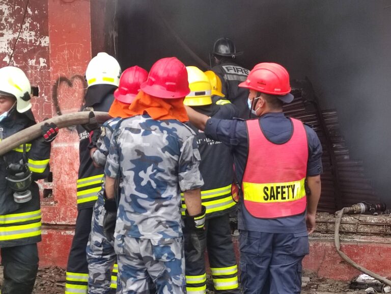 भृकुटीमण्डपको गोदाममा लागेको आगो नियन्त्रणको लागि फायर बिग्रेड यसरी खटिए