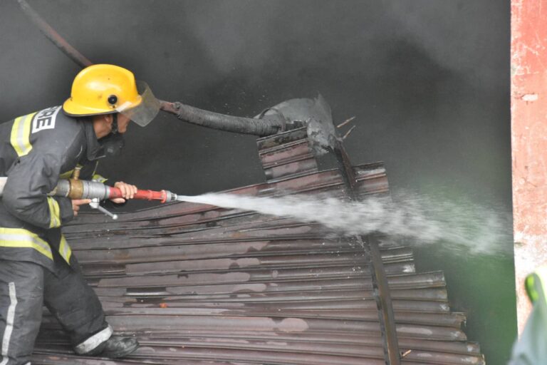 सुरक्षाकर्मी, स्थानीय तहका दमकल आगो निभाउन प्रयोग गरिएको छ । काठमाडौं महानगर मेयर बालेन साह आगलागीस्थल पुगेका छन् । आगलागीको कारण खुलिसकेको छैन । तस्विर : मुकुन्द कालिकोटे, रिपोर्टर्स नेपाल डटकम
