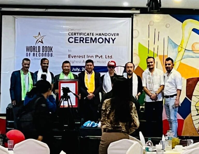 काठमाडौं, ३० असार । एभरेष्ट इन होटल विश्वकै अग्लो स्थानको होटलको किर्तिमान राख्न सफल भएको छ । ५१८० मिटर उचाईमा रहेको होटलले वल्ड बुक रेकर्ड लन्डनबाट किर्तिमानी प्रमाणपत्र पाएको हो ।