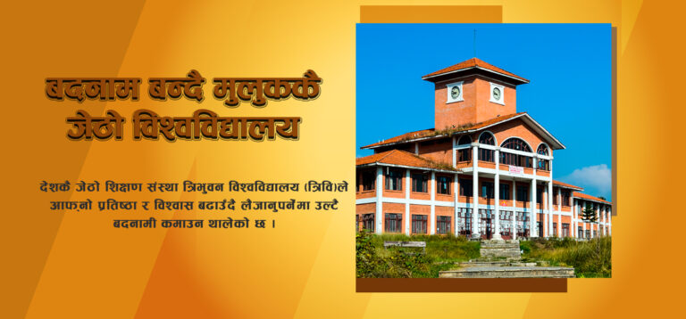 काठमाडौं, असार ३१। देशकै जेठो शिक्षण संस्था त्रिभुवन विश्वविद्यालय (त्रिवि)ले आफ्नो प्रतिष्ठा र विश्वास बढाउँदै लैजानुपर्नेमा उल्टै बदनामी कमाउन थालेको छ ।