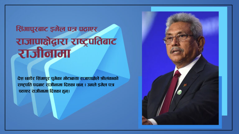 एजेन्सी, ३१ असार । देश छाडेर सिंगापुर पुगेका गोटाबाया राजापाक्षेले श्रीलंकाको राष्ट्रपति पदबाट राजीनामा दिएका छन् । उनले इमेल पत्र पठाएर राजीनामा दिएका हुन् ।
