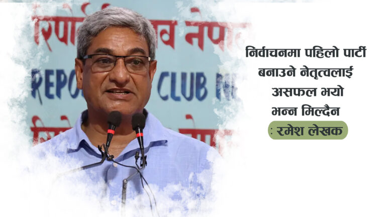 काठमाडौं, ३२ असार । नेपाली कांग्रेसका नेता रमेश लेखकले स्थानीय तहको निर्वाचनमा पहिलो पार्टी बनाउने नेतृत्वलाई असफल भयो भन्न नमिल्ने दाबी गरेका छन् ।