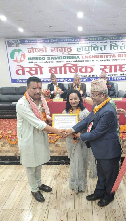 काठमाडौं, २ साउन । नेष्डो समृद्ध लघुवित्त वित्तीय संस्था लिमिटेडमा सर्वसाधारण समूहवाट प्रतिनिधित्व हुने २ जना सञ्चालक मध्ये पर्वतका विप्लव जंग हमाल निर्विरोध निर्वाचित भएका छन ।
