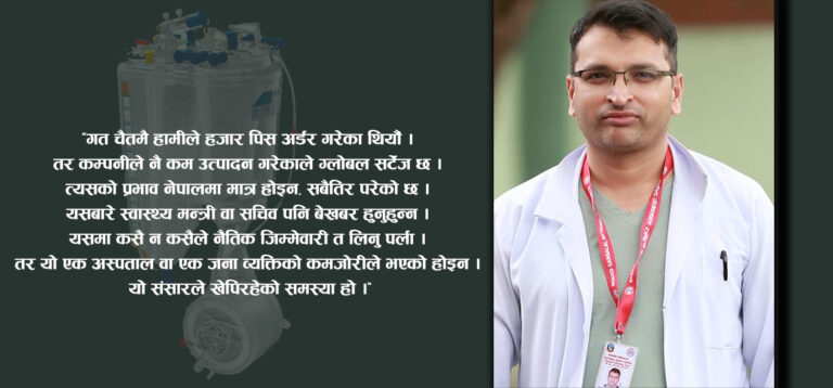 विश्व बजारमै अभाव भएकाले नेपालमा पनि त्यसको प्रभाव परेको उनको स्पष्टोक्ति छ । डा. अधिकारीले भने, “गत चैतमै हामीले हजार पिस अर्डर गरेका थियौं । तर कम्पनीले नै कम उत्पादन गरेकाले ग्लोबल सर्टेज छ । त्यसको प्रभाव नेपालमा मात्र होइन, सबैतिर परेको छ । यसबारे स्वास्थ्य मन्त्री वा सचिव पनि बेखबर हुनुहुन्न । यसमा कसै न कसैले नैतिक जिम्मेवारी त लिनु पर्ला । तर यो एक अस्पताल वा एक जना व्यक्तिको कमजोरीले भएको होइन । यो संसारले खेपिरहेको समस्या हो ।”