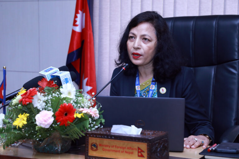 काठमाडौँ,४ साउन । परराष्ट्र मन्त्रालयमा बुधबार आयोजित नियमित पत्रकार भेटघाटमा मुलुकको दुईपक्ष तथा बहुपक्ष कुटनीतिक भेटघाट बैठक एवं सम्बन्धका विषयमा भए, गरेका गतिविधिबारे जानकारी दिँदै मन्त्रालयका प्रवक्ता सेवा लम्साल । तस्बिर : रत्न श्रेष्ठ÷रासस